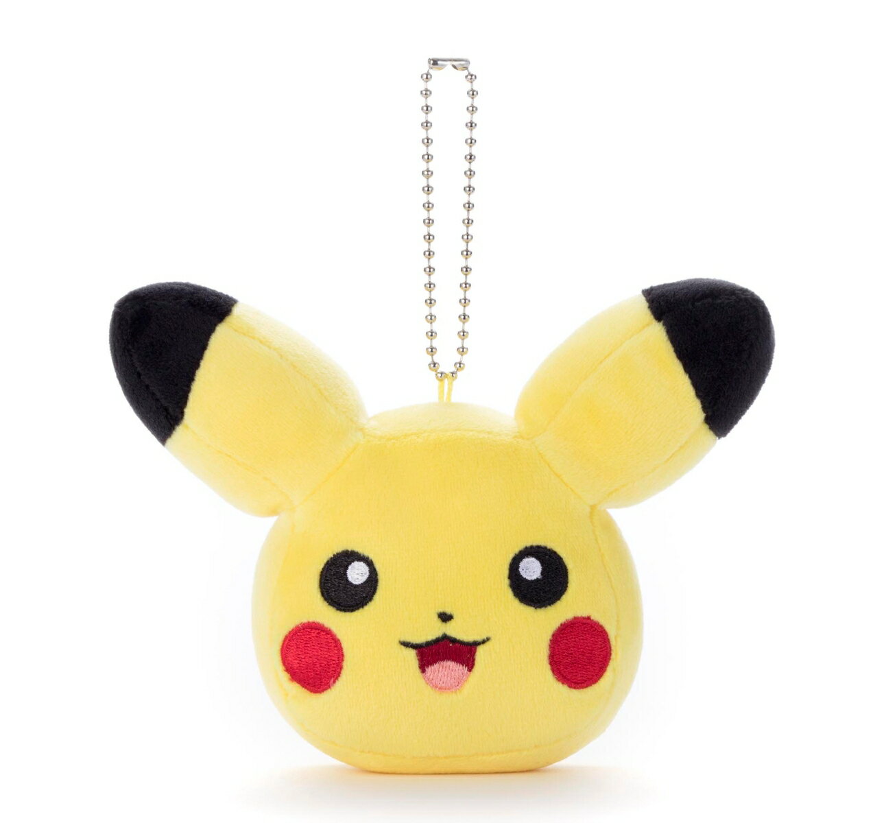 極上な柔らかさ&きもちぃ肌触りを再現したぬいぐるみ「もっちぃもっちぃ」に、おなじみのポケモンをはじめ、アローラ地方のポケモンたちが仲間入り。こちらはボールチェーン付きのフェイス型マスコット。こちらはピカチュウ。全高約11.2cm。