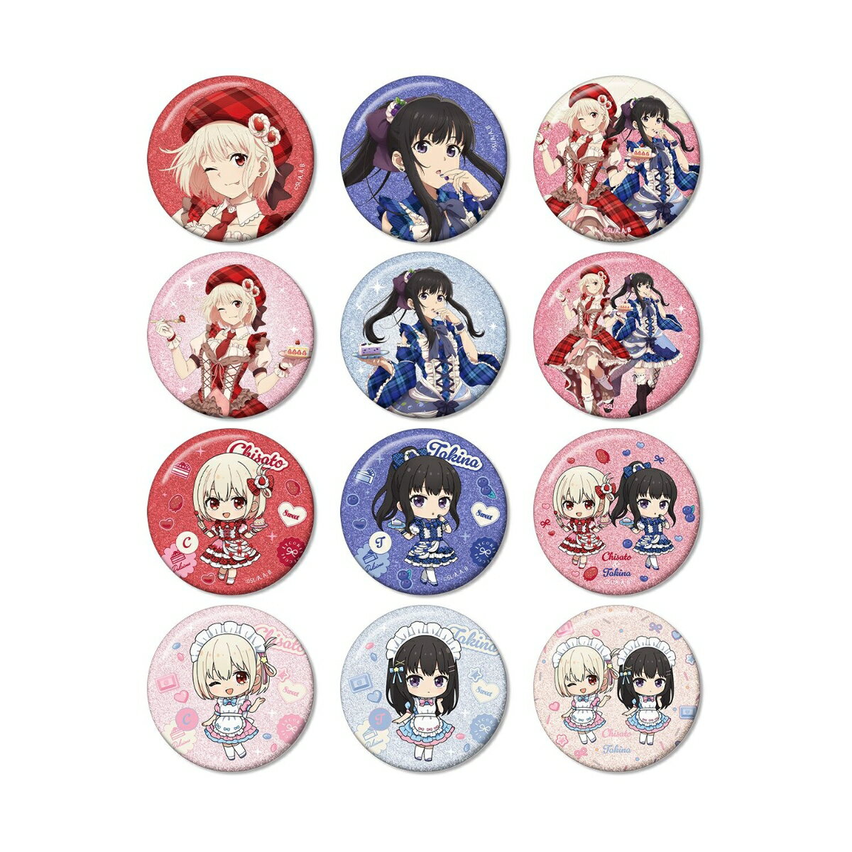 TVアニメ「リコリス・リコイル」より、トレーディンググリッター缶バッジの登場です。 錦木千束、井ノ上たきなの描き下ろしイラスト、描き起こしちびキャライラストをグリッター加工を施した缶バッジに仕上げました。 カバンや小物につけたり、お部屋に並べて飾ったり、キャラクターとの日常をお楽しみください。 素材...
