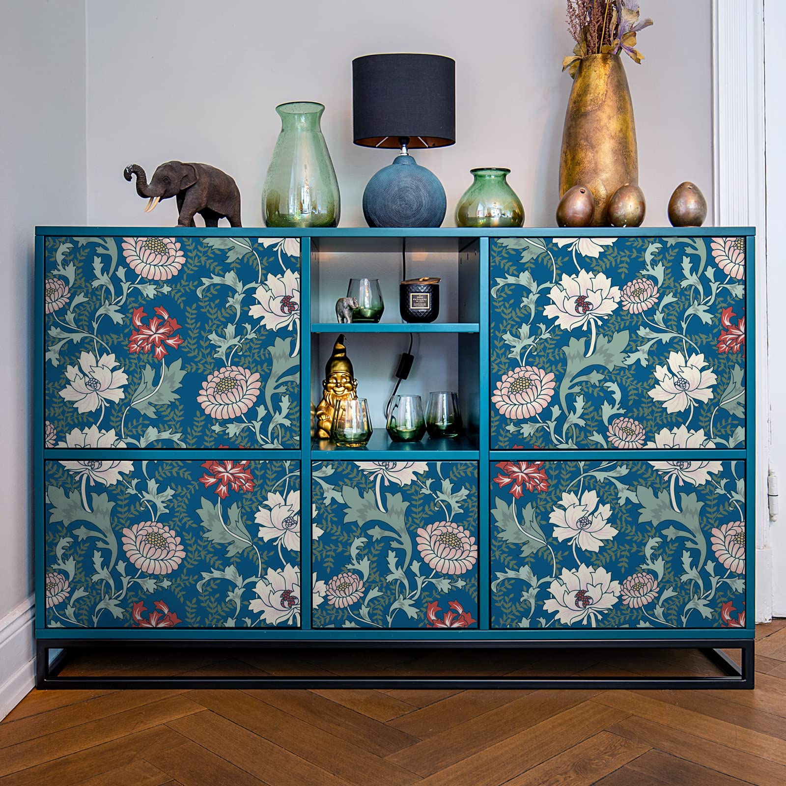 【送料無料】VaryPaper 壁紙 シール 花柄 リメイクシート ブルー 藤の蔓 ボ...