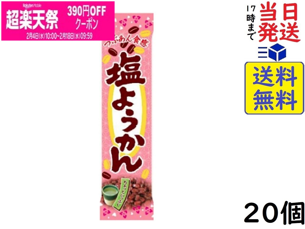 やおきん 塩ようかん 20個賞味期限2026/07/08 【送料無料】【当日発送】【ポスト投函】 塩ようかん塩気のほどよく効いた甘すぎない羊羹で、ポケットサイズでついで買いしやすい携行食、午後からの気分を切り替える行動食としてもぴったりです。小豆粒入りで食感を楽しみながらゆっくりと食べられ、一般に販売されている...