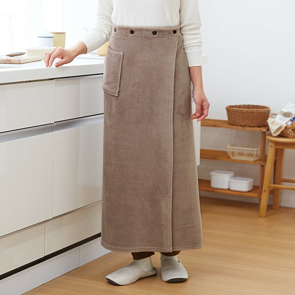 足元の冷えをすっぽりカバーするふんわり暖か巻きスカート!足元の冷えをすっぽりカバーするふんわり暖か巻きスカート!サッと巻くだけ!ボトムに重ねてオーバースカートとしても。寒〜いキッチンの冷え対策に!スマホも入る大きな右側ポケット付スナップボタンでウエストのサイズ調節可能ボタンを外してひざ掛けとして...