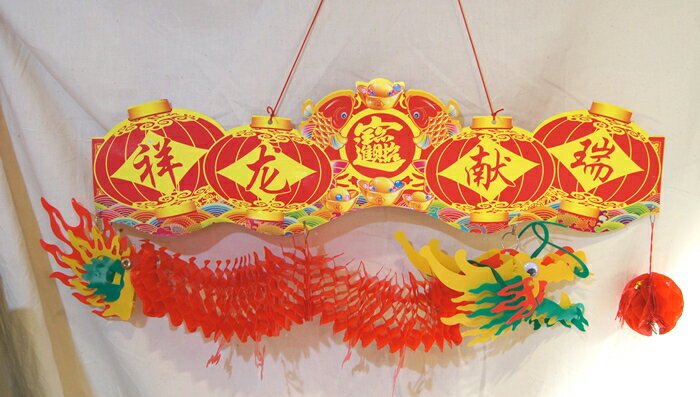 吊るし 吉祥龍飾り 大 プラスティックで作った可愛い龍の飾り物です。プラスティック製なので軽くて天井からぶらさげても安心です。店舗の飾りつけやイベント事などに是非ご利用下さい! ・サイズ 24cm ・プラスティック製 ・中国製