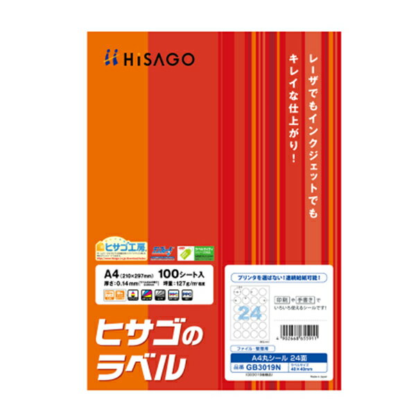 ヒサゴ A4丸シール 24面 100シート入り GB3019N