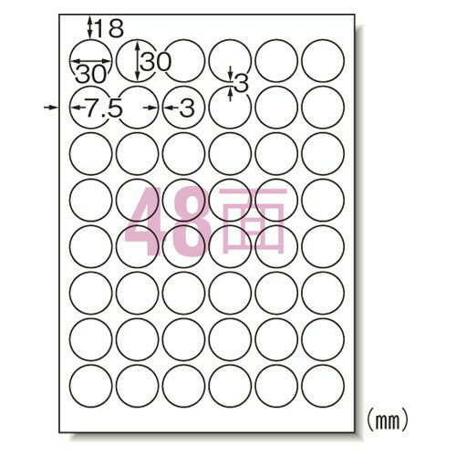エーワン A-ONE 76248 ラベルシール ハイグレード A4 48面 丸型 マット紙・白 ◆入数:100シート(4800片) ◆シートサイズ:A4判 (210×297mm) ◆一片サイズ:30mmφ ◆面付:48面 6列×8段 ◆厚み:175g/m2(0.19mm) ◆ラベル・カード厚み:0.13mm ◆材質:上質紙 ◆用紙特性:マット ◆白色度:0.98 ◆再生可能なはくり紙を使用:○◆各種プリンタ...