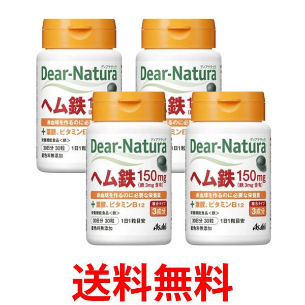 4個セット アサヒ ディアナチュラ ヘム鉄 葉酸 ビタミン B12 30日分 30粒 送...