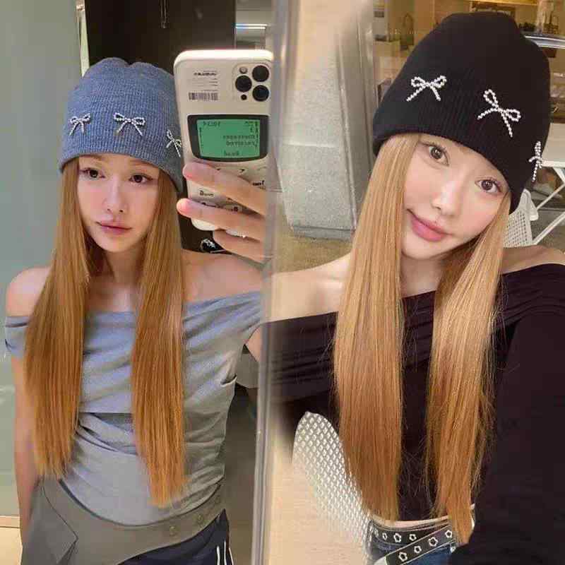 [ "・製品カテゴリ: ニット帽", "・適合シーズン: 冬", "・帽子の種類: ラウンド", "・つばのスタイル: ワイド", "・カラー: グレー, ブラック", "・機能: 保温", "・主な生地の組成含有量: 31%-50%", "・スタイル: 日韓, スイート, 韓国&q...