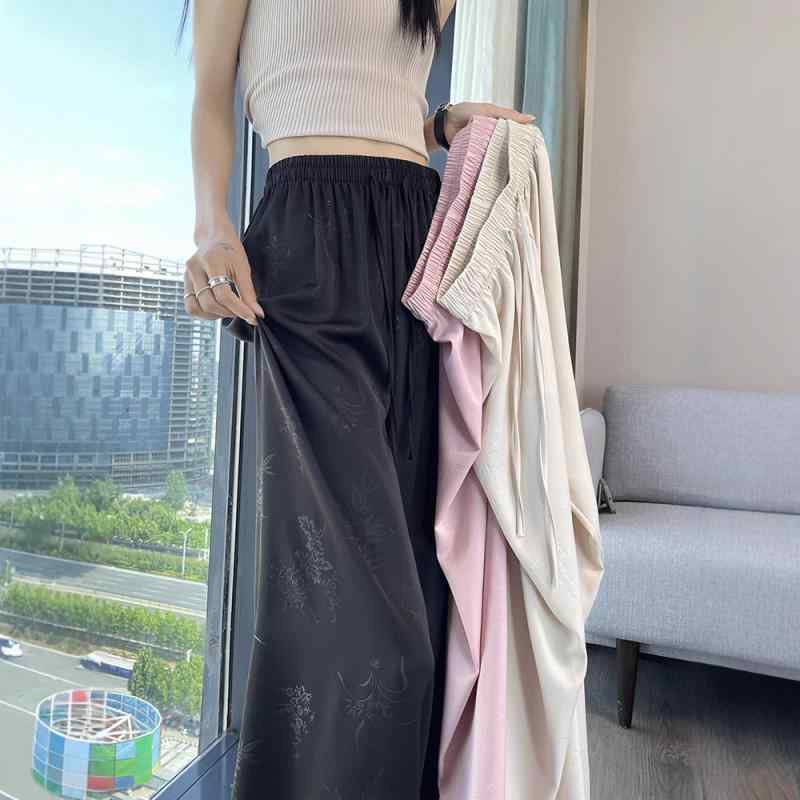 ワイドパンツ レディース ポリエステル 高見え プリント柄 ゆったり ストレ...
