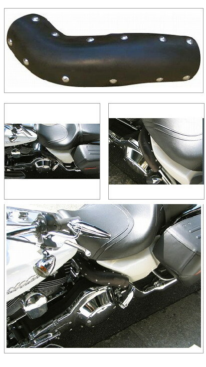 ■詳細説明ツーリングファミリー用に開発されたマフラープロテクターです。純正のマフラーのヒートガードの上から取り付けます。純正以外のマフラー、ヒートガードのない物には取り付けできません。金属製のプロテクターに比べ熱の伝わり難い本皮革(5mm厚)を使用しています。FRP製ベースに5mm厚の本皮革をリベット留めし...