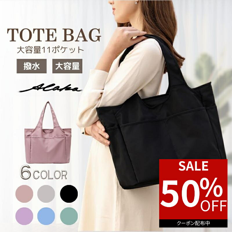 ■商品仕様 大容量で便利☆シンプルなデザインのトートバッグ! 6個の多機能ポケットで収納上手! ■商品説明 【スッキリ収納上手】 A4サイズの書類やタブレットもすっぽり収納できるから通勤・通学にも最適! 6個の多機能ポケットで荷物の取り出しも楽々の優秀トートバッグ 【豊富なカラーバリエーション】 豊富な全6色の...