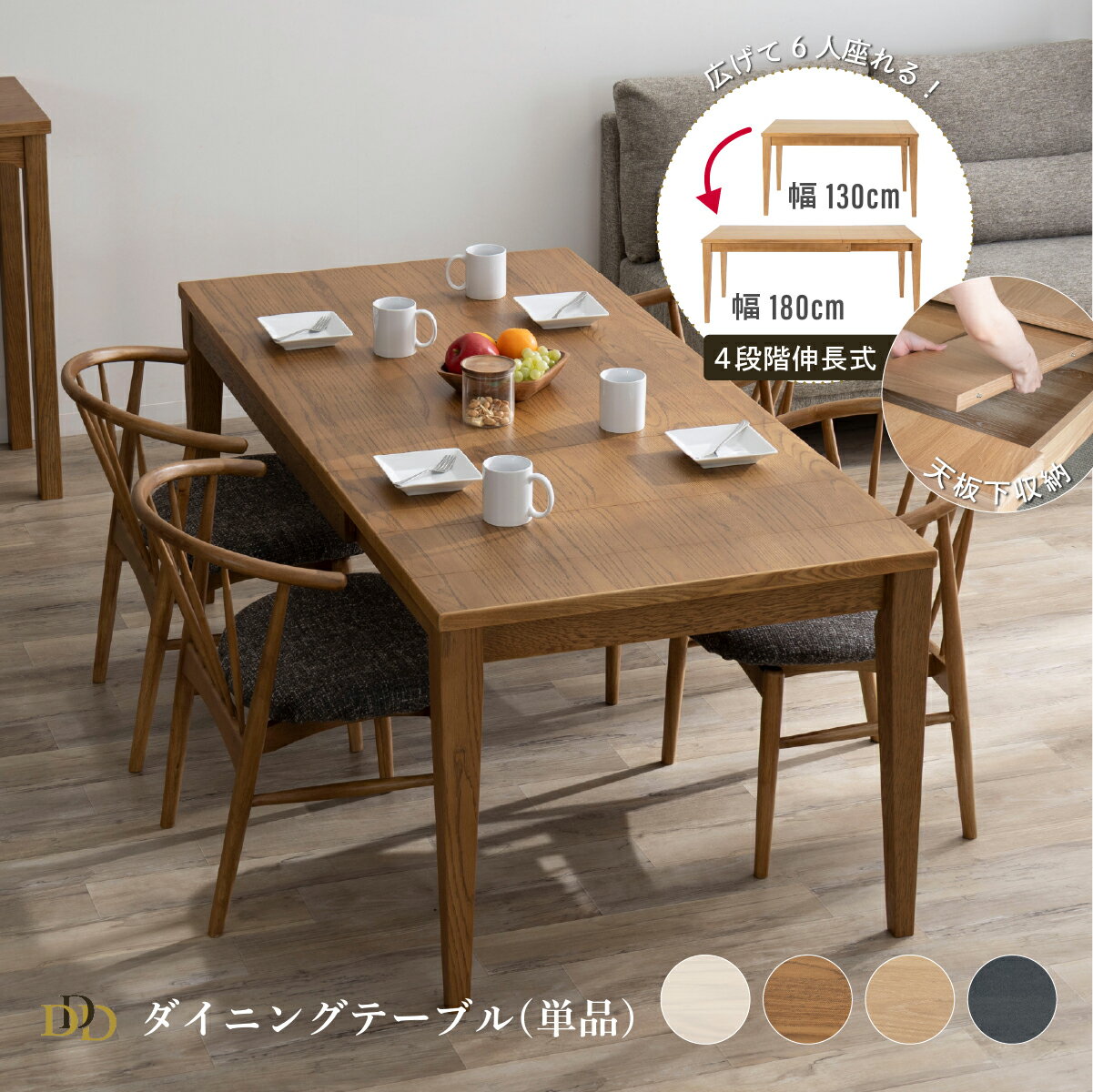 商品のご案内 130-180cm 幅 伸長式 ダイニングテーブル サイズ 幅 130-180 奥行き 85 高さ 70 cm 重量 52.5kg 素材 (主材) ホワイトオーク突板(木部塗装) ウレタン塗装 カラー WH (ホワイト) VO (ヴィンテージオーク) SNOW (スノー) DK (ダークグレー) 耐荷重 [天板] 30kg 梱包サイズ 2梱包でお届けします。 [天板] 幅 1...