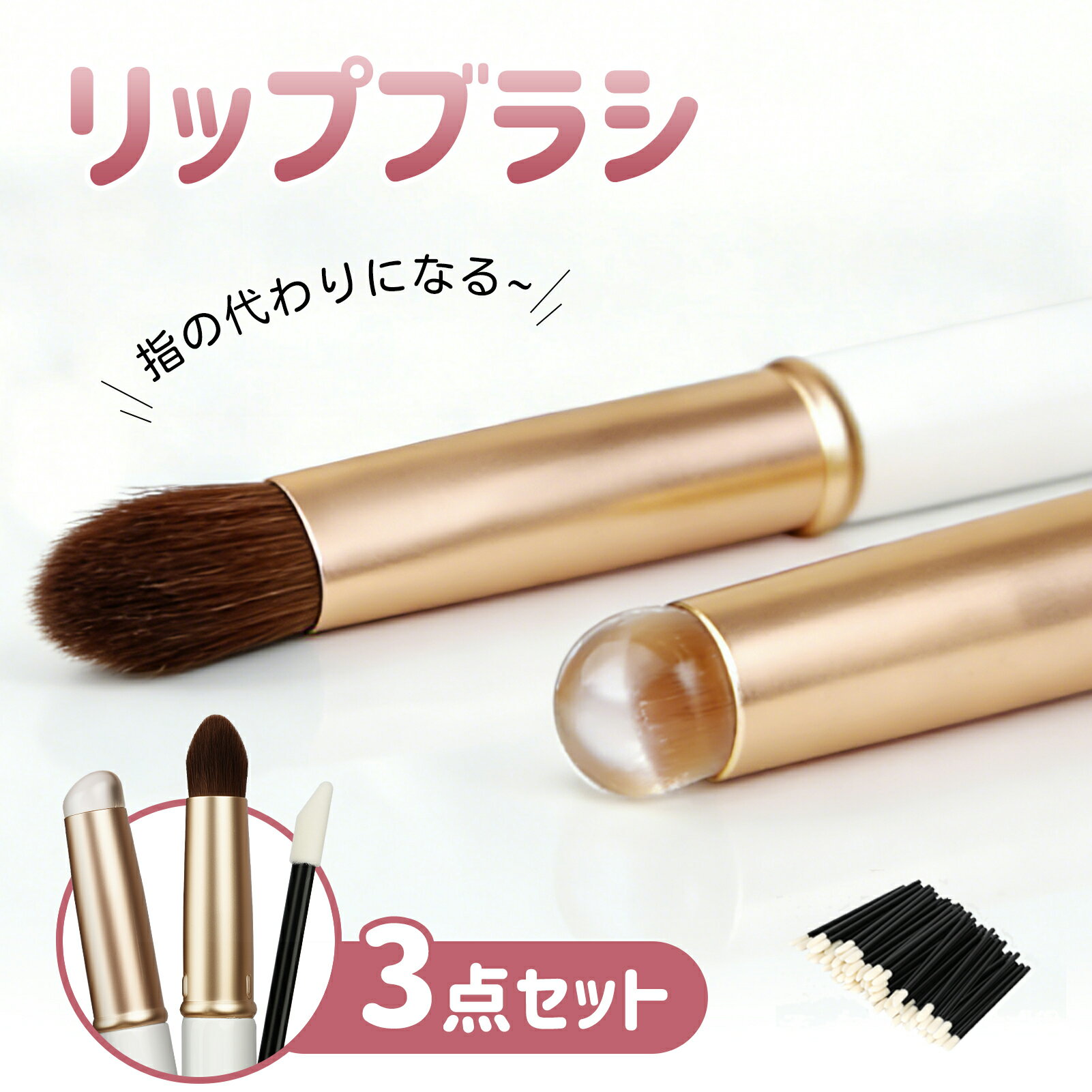 リップブラシ 3セット シリコン(1本) 馬毛風(1本) 使い捨て(50本) 携...