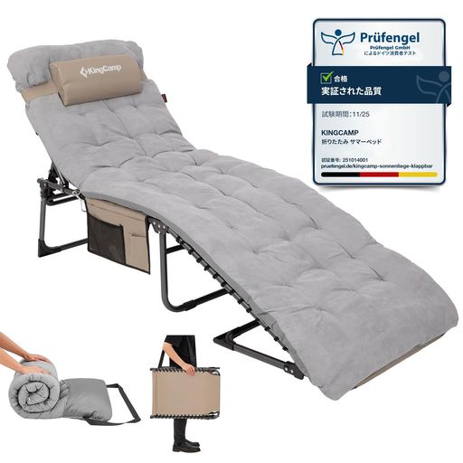 【耐久性と安定性】高密度防撕裂オックスフォード生地を使用し、耐久性が高く、長時間の使用にも耐えます。ベッドフレームは強固なスチールで作られ、高い安定感を提供します。人間工学に基づいたS字デザインで体にフィットし、快適な寝心地を実現します。さらに、防滑フットカバーが付いており、野外でも揺れることなく...