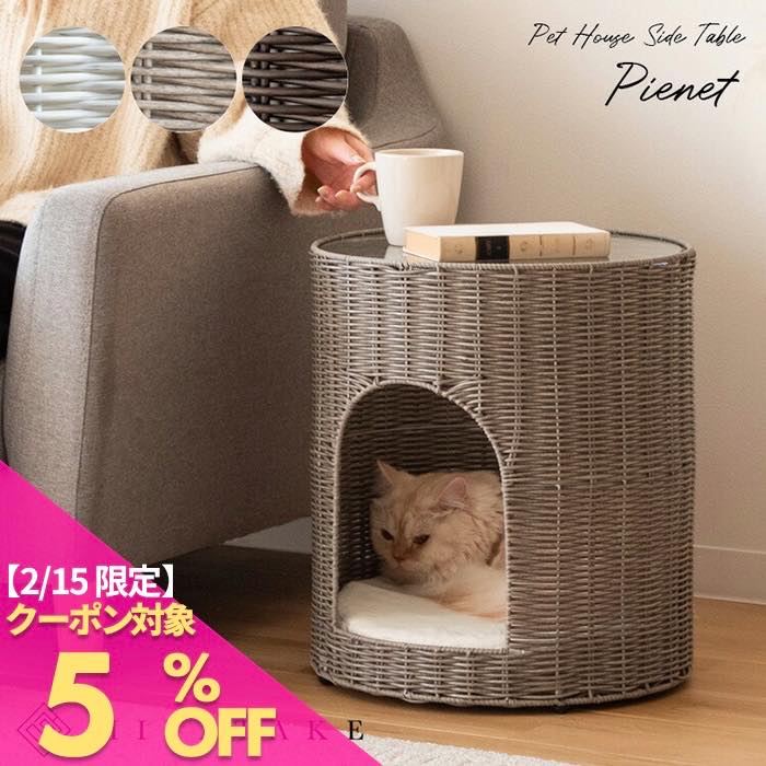 サイドテーブルとしても使える樹脂製ラタンの猫ちぐら『Pienet(ピエネ)』。透明なガラス天板は、上から中に居る猫ちゃんの様子を確認することができます。 丈夫でおしゃれな樹脂製ラタンはリビングに馴染み、くつろぎながら猫ちゃんとの大切な時間を過ごすことができます。 カラーはホワイト、グレージュ、ダークブラ...