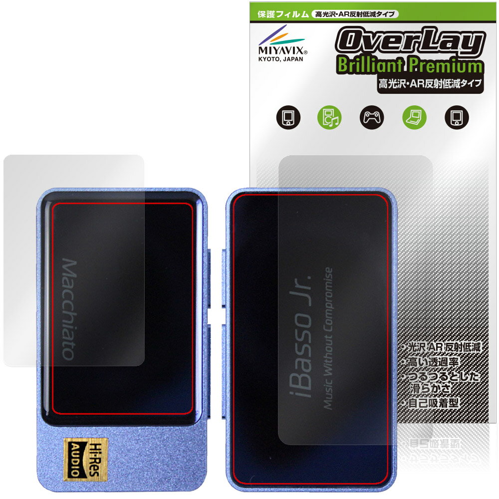 アイバッソ「iBasso Jr. Macchiato」に対応した黒を引き締めギラツキを抑える『表面・背面セット』の保護シート! 超ハイスペック高光沢タイプ OverLay Brilliant Premium(オーバーレイ ブリリアント プレミアム)! 映像表現を遮ることなく保護できる高光沢タイプの保護フィルムです。 AR反射低減を採用することにより、...