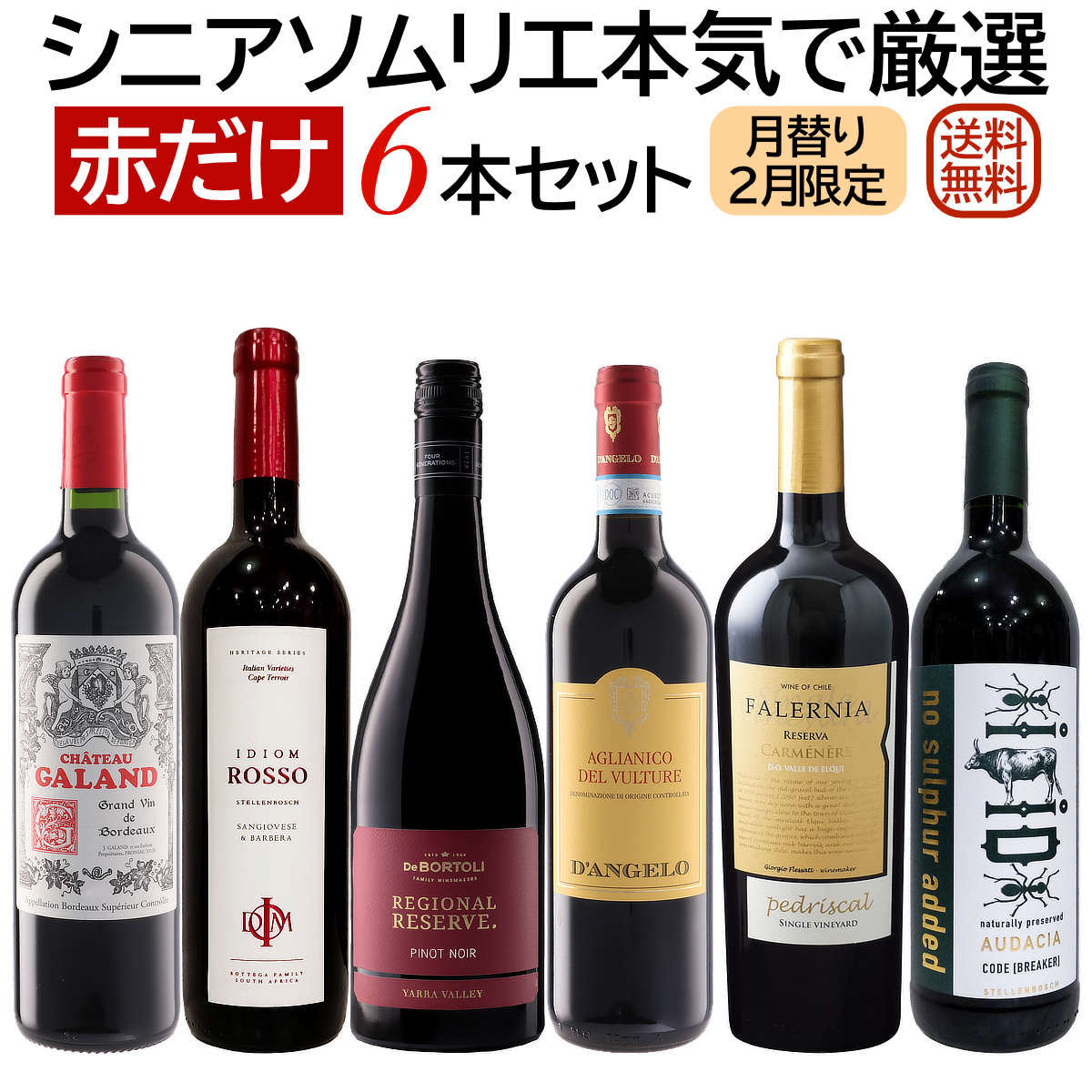ソムリエ厳選セット 月替り「ちょっと贅沢ワイン」世界各国飲み比べ 赤だけ6...