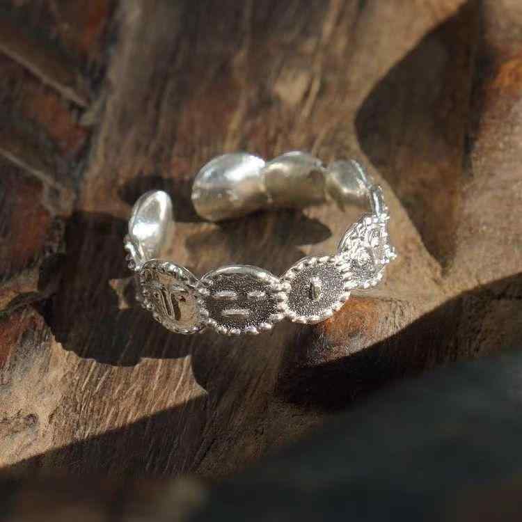 指輪 レディース 925シルバー 表情デザイン 高級感 レトロ シンプル 開口 フ...