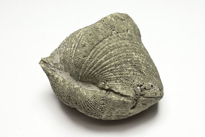 5.2×4.2×3.8cm 114g パイライト化したデボン紀のパラスピリファー化石です。 表面がパイライトに覆われたオハイオ産の名物化石です。 パラスピリファーは一見二枚貝に見えますが腕足動物に分類されます。 学名:Paraspirifer Bownockeri 産地:Silica Formation, Lucas Co., Ohio