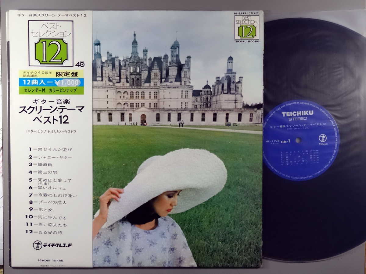 商品情報【種別/分類】LPレコード/ムード、軽音楽【アーティスト】カンノ・トオル【タイトル】ギター音楽スクリーン・テーマ・ベスト12【発売会社/企画番号】テイチク/BL-1193【定価】1000【帯】良(E)【ジャケ】良(E)/軽シミ点【歌詞カード】---(ジャケ裏に記載)【盤】良(E)/光沢(良)、軽チリパチノイズ...