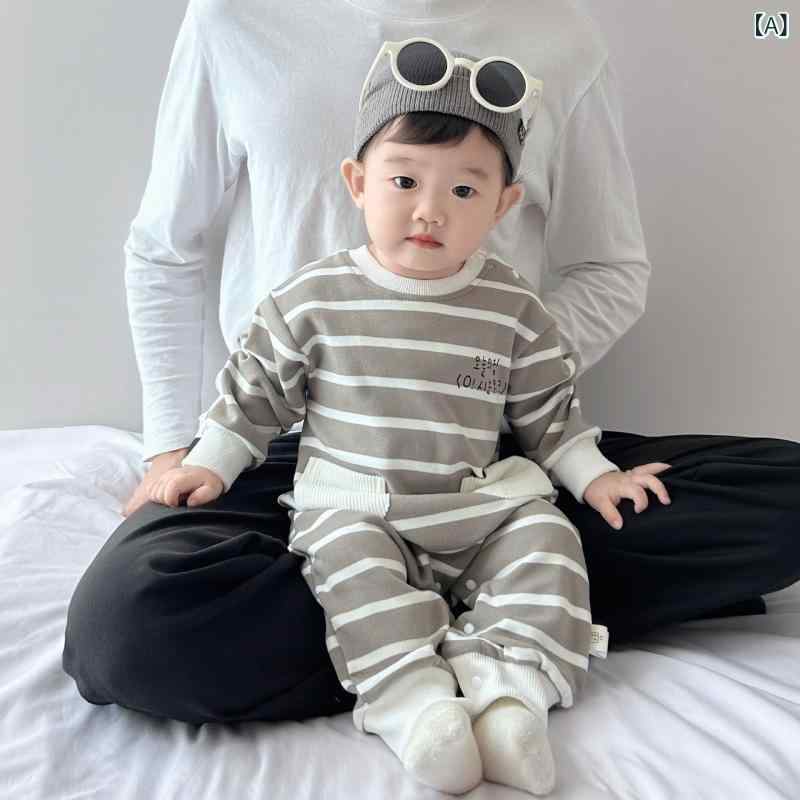 ロンパース 男の子 ベビー 新生児 カバーオール 長袖 ストライプ柄 韓国風 ...