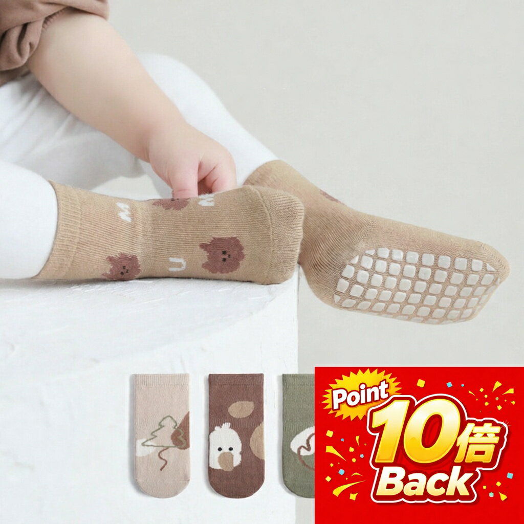 ベビー靴下 5足セット 滑り止め付き(10/12/14cm)動物柄コットンソックス よちよちの一歩をやさしくサポートする、滑り止め付きベビーソックス5足セット。ナチュラルカラー×かわいい動物柄で、毎日のコーデにすっとなじみます。履き口はほどよく伸びて脱げにくいから、元気に動き回る赤ちゃんにもぴったり。洗い替えに...
