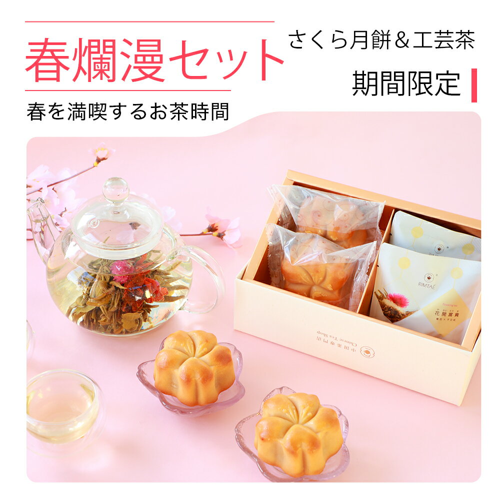 桜 さくら スイーツ 春季限定 さくら月餅2個&工芸茶2個セット まとめ買い 合...