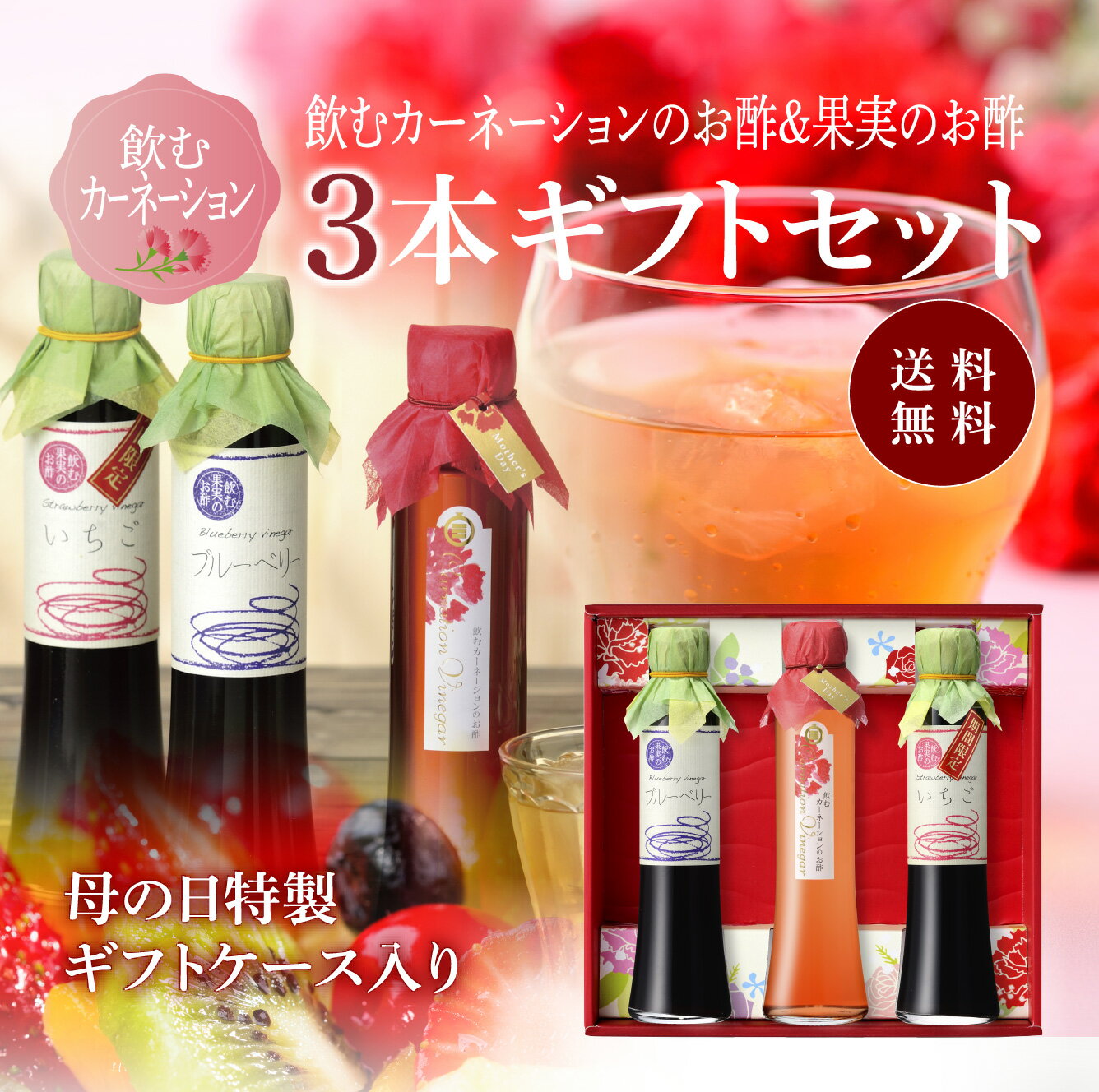 送料無料 ※北海道・沖縄・離島除く飲むカーネーションのお酢&果実のお酢 3...