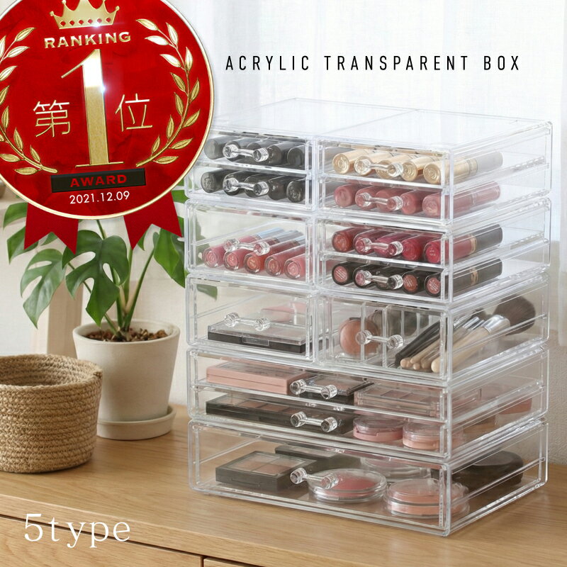 アクリルケース 引き出し コスメ収納 透明 2段 1段 横長 大型 重ね 小物 ネ...