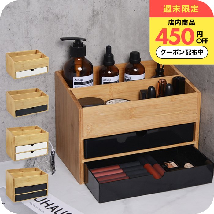 バンブーxプラスチック メイクボックス(シンプルな化粧箱) 1段タイプ/2段タイプからお選びいただけます! カラーは、ホワイト(白)/ブラック(黒)の2色。 サイズ(引き出し1段)*若干の誤差あり 奥行き15.5cmx幅25.6cmx高さ13.8cm サイズ(引き出し2段)*若干の誤差あり 奥行き15.5cmx幅25.6cmx高さ17.3cm 竹材と...