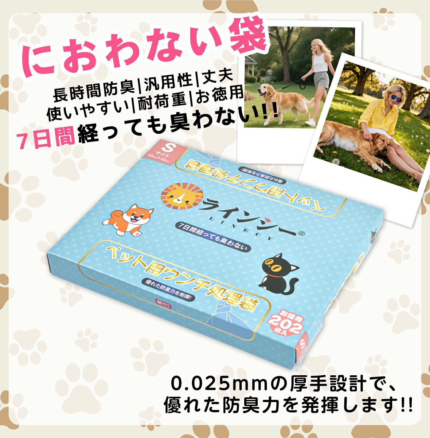 製品名消臭袋 猫 SSサイズカラーブルー・半透明SSサイズ「SSサイズ」:幅17cm×縦27cm;202枚 「Sサイズ」:幅20cm×縦30cm;202枚 「Mサイズ」:幅23cm×縦38cm(マチ付き)92枚厚さ0.025mm防臭時間7日間経っても臭わない原料樹脂ポリエチレン(香りなし),EVOH(エチレン・ビニルアルコ-ル共重合体)袋の引き出し方一枚ず...