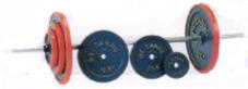 シャフトはゴム製グリップ付きで握り心地を和らげ、手の滑りを防止します(PAT.P) B型シャフト(重量7.5kg・口径28mm・グリップ巾100cm・全長150cm・耐用重量100kg・ハンドル式カラー付き)B型プレート使用、各プレート2枚組 5kg以上のプレートにはプレートカバーが付きます。 品番 重量 OX-607 40kgセット プレート(1....
