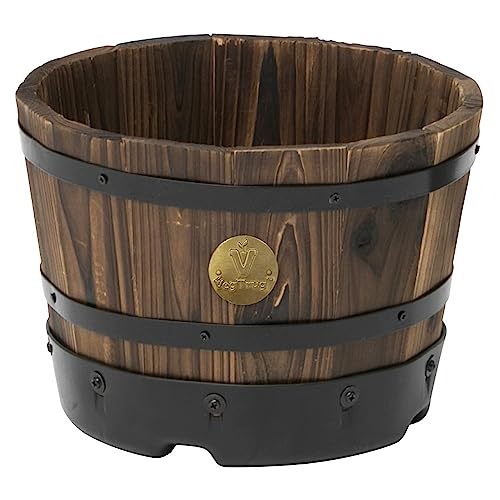 タカショー(Takasho) ウッドバレルプランター 浅型S 約W26×D26×H18cm