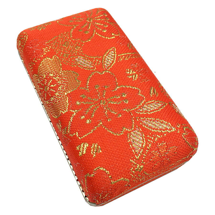 【 爪駒入れ 錦 中 】銀フチ有り 三味線 琴 箏 錦柄 中サイズ