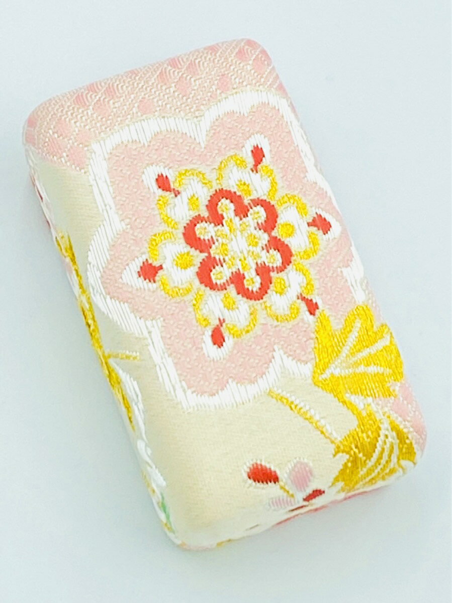 【 爪駒入れ 錦 中 】銀フチ有り 三味線 琴 箏 錦柄 中サイズ
