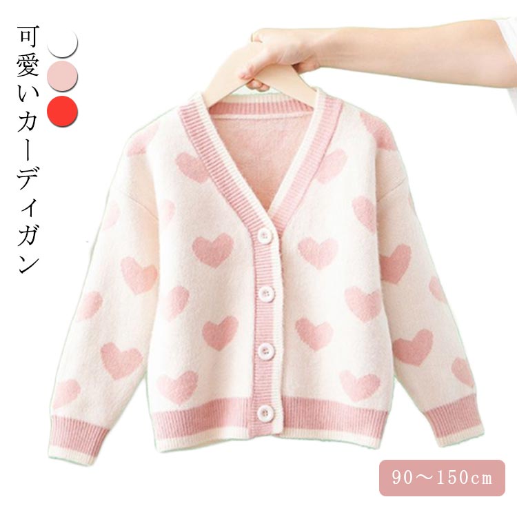 可愛いハート柄ニットカーディガン。肌触りは柔らかで着心地抜群!着るだけで上品なおしゃれが楽しめる、可愛い魅力を引き出します!通園通学のちょっと肌寒い日にもってこいの一着です。サイズ90 100 110 120 130 140 150サイズについての説明サイズは写真通り素材アクリル色ホワイト ピンク レッド備考サイズ詳細等の測...