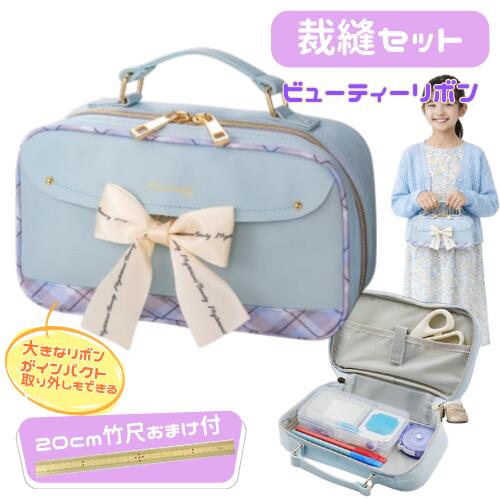☆裁縫セットを1セットご注文につき【竹尺20cm】を1本プレゼントいたします! ◆大きなリボンが特徴の淡い色のデザインの裁縫セット。 ◆リボンは取り外しが自由にできるので、自分のお気に入りのアクセサリーも取り付けられる。 ◆シンプルで長く使えるデザインです。 ◆小学生から大人まで使える基本的なセットが揃っていま...