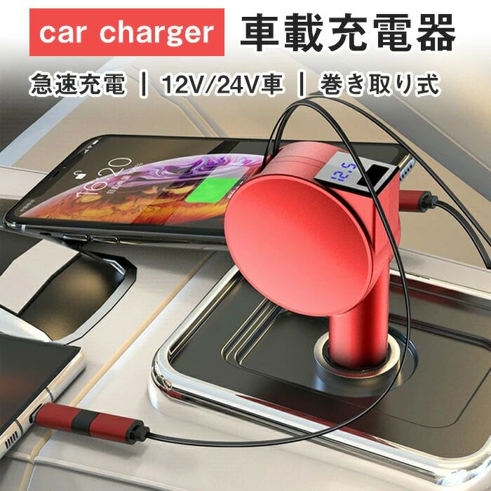 商品詳細 商品名 車載充電器 充電ケーブル 3in1 cable01 カラー ブラック レッド 重量 本体約89g 商品説明 巻き取り式車載用4in1充電アダプター スマホなど様々な電子機器を3台同時に充電可能 最長80cmまで伸びる、好きな長さに調整が可能 電圧測定チェッカー機能付きで、いつでもLEDスクリーンから車の電圧状況を確...
