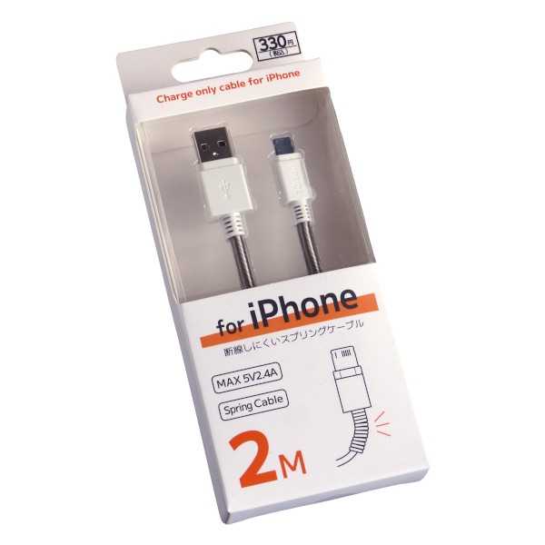 iPhone用の充電ケーブルです。iPhone・iPad等のライトニングポートに対応したUSBケーブルです。スプリング付きで断線に強いです。電源から離れた場所でも使える2mのロングケーブルです。※パッケージの表示価格は店頭販売価格の為、当店販売価格とは異なります●サイズ(約)・ケーブル長2m●材質・PVC●用途・iPhone iPad 充...
