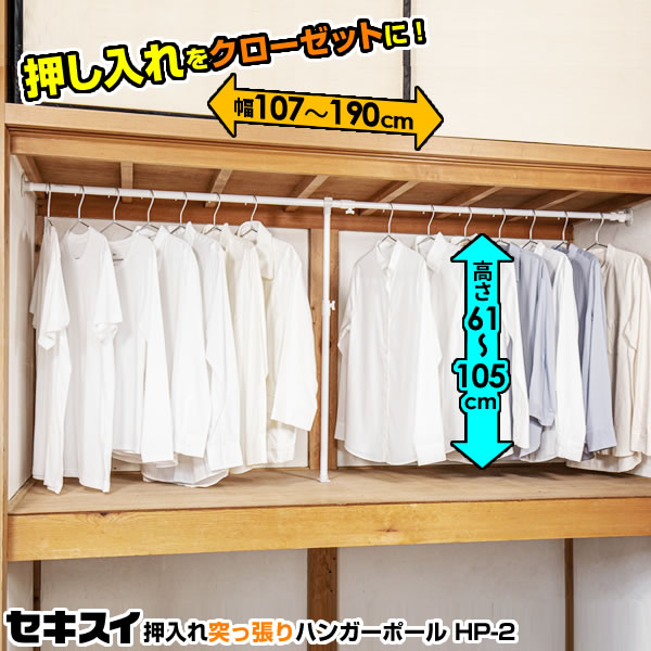 突っ張り棒 セキスイ 押入れハンガーポール 伸縮式 ホワイト&グレー HP-2 ...
