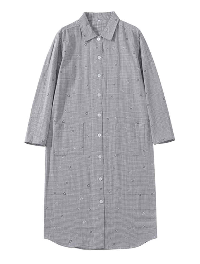 【送料無料】[Euyqs] レディース長袖 前開き ロング丈 ワンピース 綿 ドット...