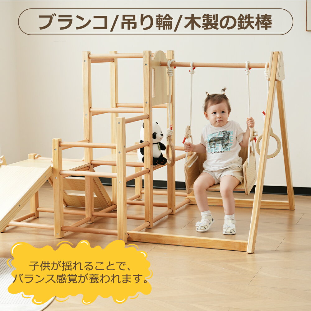 ジャングルジム 8in1 天然木 ブランコ すべり台 滑り台 折りたたみ 黒板付き...