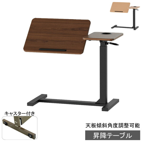 ベッドテーブル 昇降式テーブル 介護 キャスター付きカップホルダー 天板傾...