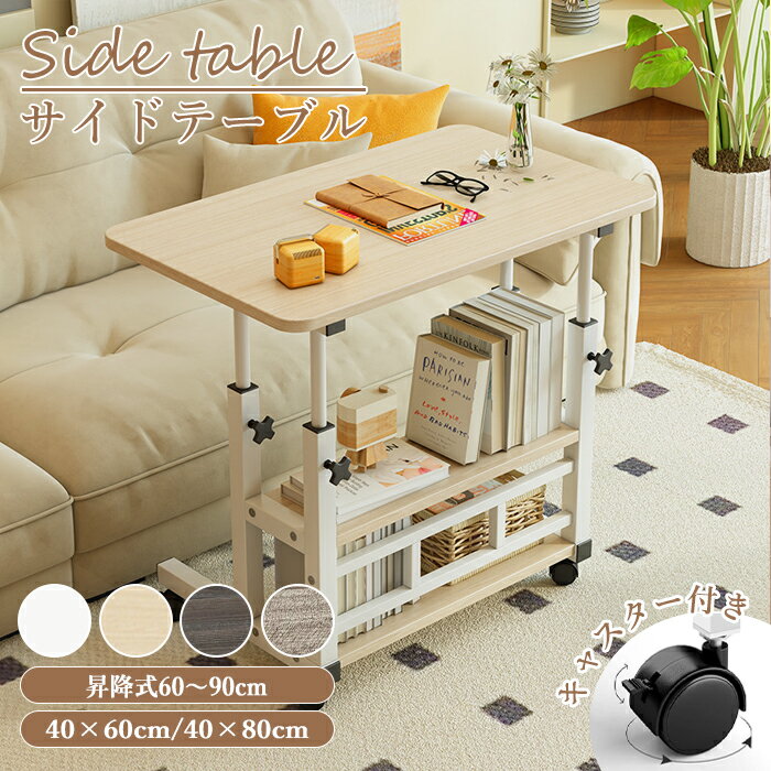 使い勝手に合わせて角度&高さを自由に調節できる昇降テーブル。材質:天板 合成樹脂化粧繊維板脚部 スチール耐荷重:約20kg商品サイズ(約cm):商品外寸 幅60×奥行40/幅80×奥行40高さ調節の昇降機能付き、昇降範囲が60-89cmぐらい。座って使用したり、立って使用したりすることもできます。コの字型デザインなので、ソフ...