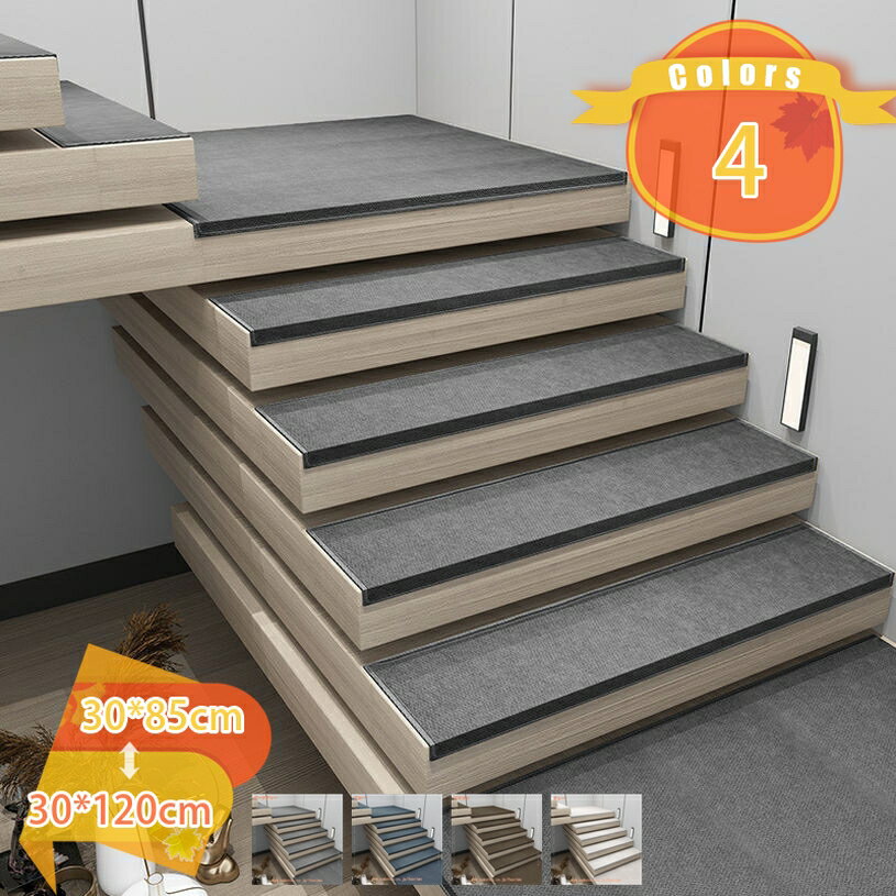 メイン素材:ポリエステル【サイズ】30*85cm 30*100cm 30*120cm 【内容量】1枚厚手でしっかりした生地を使用しているので防音効果がバツグン、いつも気になる足音を軽減できます。また床キズの防止にもなるので新築や住宅にも優しいです。裏面のテープを剥がして階段にセットするだけ、両面テープは必ず剥がしてセットし...
