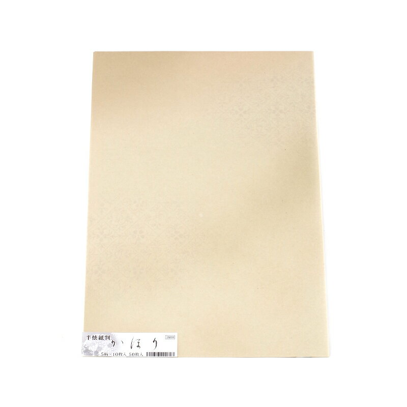 【商品ローマ字】kahori【商品サイズ】25.0×36.5cm【枚数】50枚(5色/各10枚入)【用途】かな向け料紙#書道紙/#料紙/#半懐紙/#かな作品向き/#かほり かな料紙 かほり かほりの特徴 雁皮を主原料とし、他にワラ・パルプ等を使用。 少し渋めの色に花や波、七宝などの落ち着いた柄を印刷しています。 筆滑りがよく初...
