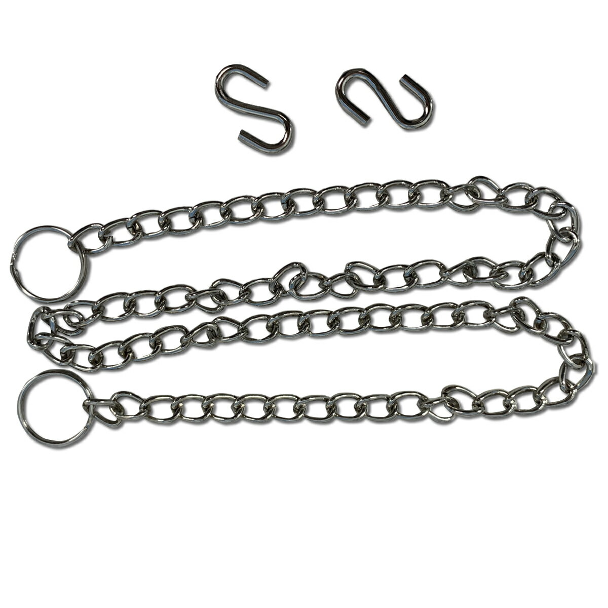 60cm 安全耐荷重量:7kg(2点吊方式) 材質:スチール製 付属品:S鐶・丸鐶 各2個入 パネルやフレームの吊り下げに便利な鎖のセットです。