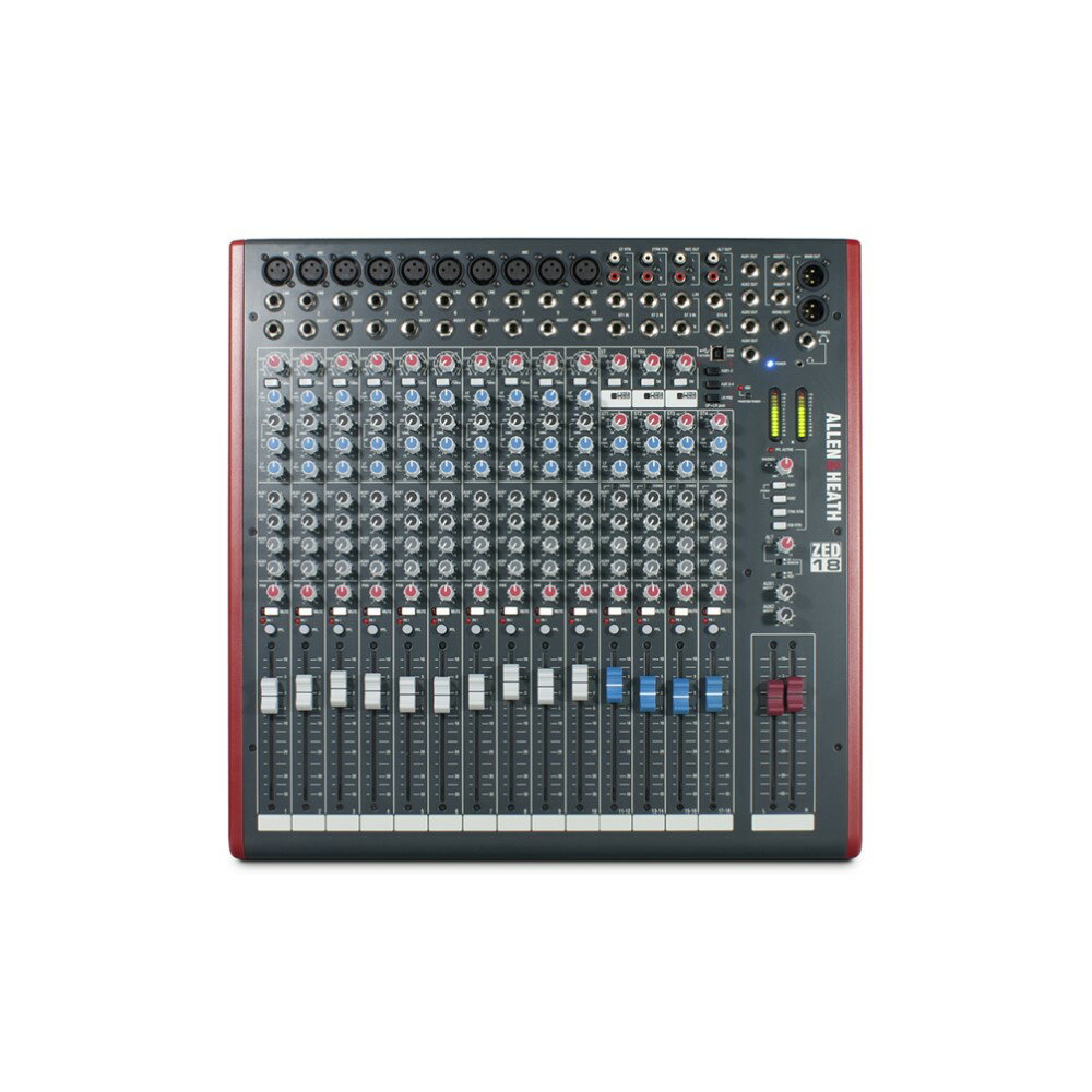 【Allen & Heath】ZED18 アナログ・ミキシングコンソール ■ZED Mid (2-Bus) 4AUX 18chアナログミキサー ■16フェーダー(100mm) 10モノ入力(XLR,インサート用TRS付) 3ST入力(TRS) ST RTN(TRS) 2TRK RTN(TRS) 4AUX出力(TRS:2pre,2post) Rec用出力(RCA) ALT出力(RCA) Main mix&nbs...