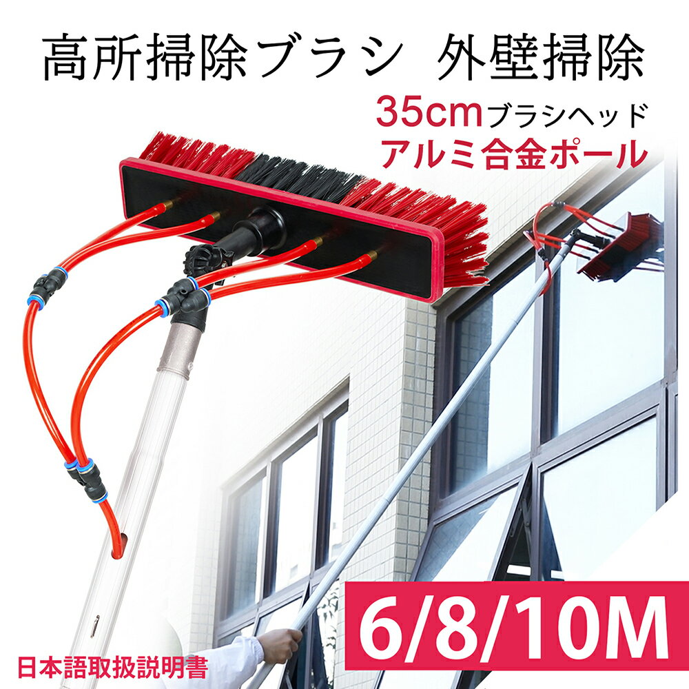 高所掃除ブラシ 外壁掃除 6m~10m 掃除ブラシ長い 給水伸縮ブラシ 35ブラシヘ...