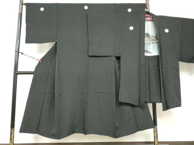平和屋着物●男性 黒紋付 長羽織セット 羽裏:風景文 正絹 逸品 DABB08...