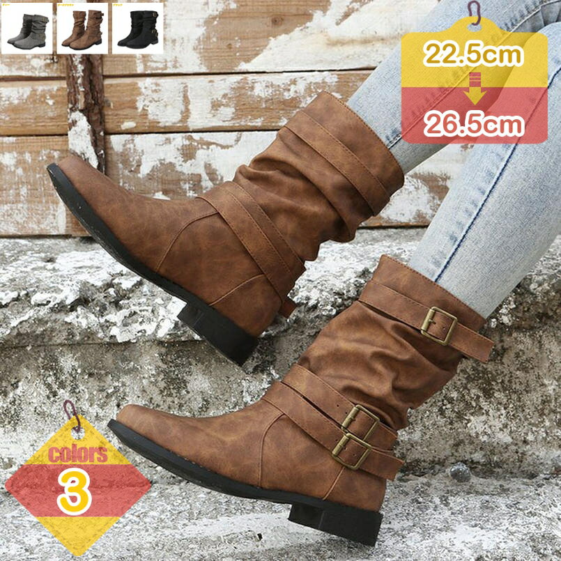 ミドルブーツ レディース ブーツ ブーティ 靴 疲れない ブーツ ぺたんこ 歩...