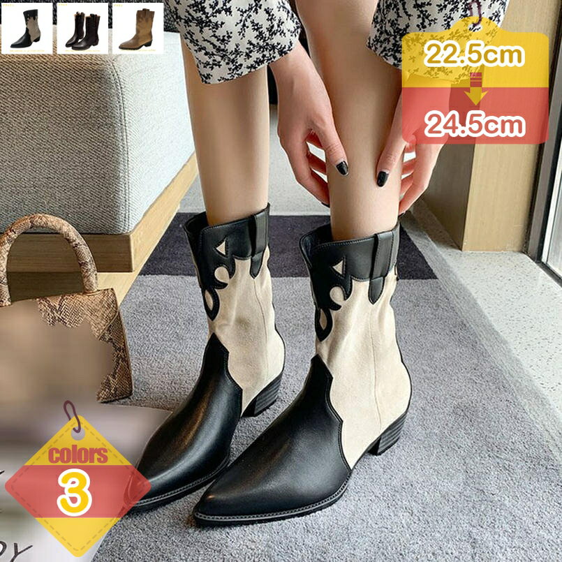 美脚 ブーツ ロングブーツ Vカット ミドル丈ブーツ ウェスタンブーツ レディ...